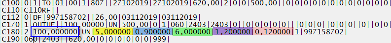 05 (VL_UNIT_CONV): R$ 500,00/ 100 = R$ 5,000000