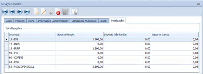 A inclusão e os estornos dos Documentos com Retenções do CE na tela de Serviços Tomados serão efetuados somente através da Interface dos Serviços Tomados.