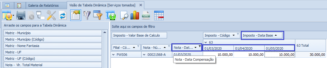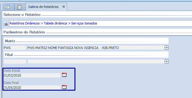 A Data inicial e final informadas para geração do relatório correspondem as Datas Bases dos Impostos.