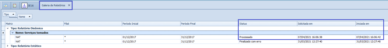 Foi verificado que a duplicidade de códigos de serviços para o Item ocasionava erro no processo do relatório dinâmico, gerado na Galeria de Relatórios, para o relatório de Serviços Tomados.