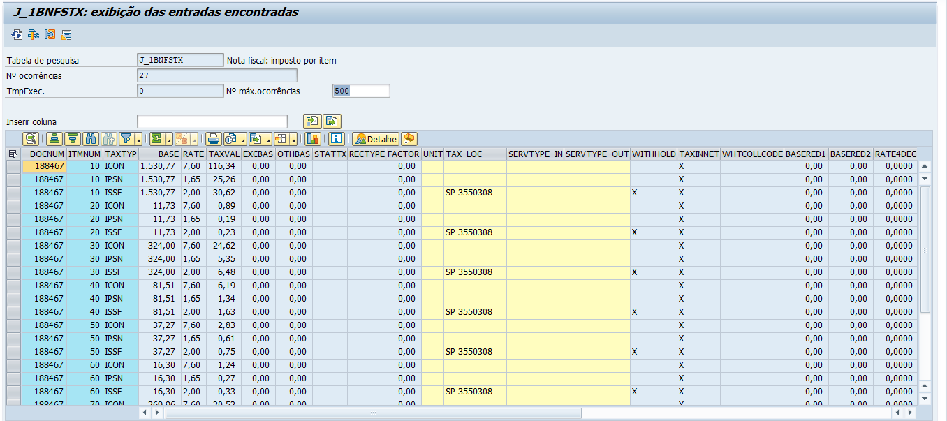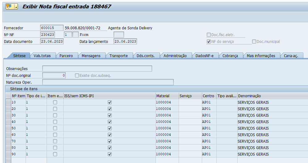 Para os documentos identificados, será verificado quais deles existem na tabela “with_item” com categorias e códigos de impostos cadastrados no parâmetro “/PWSATI/ZLFM003”.