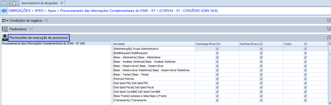 Permissão para executar o processo “Processamento das Informações Complementares do ICMS ST” na tela "Gerenciamento de Obrigações".