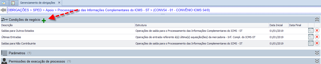 Após a criação da Condição de Negócio, é necessário vincular a Condição de Negócio com a Filial na tela "Gerenciamento de Obrigações", conforme ilustrado abaixo: