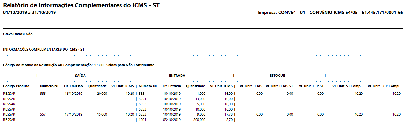 Condição de Negócio: REL_INF_COMPL_ICMS_ST_SAIDAS