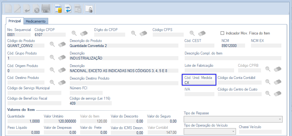 Desta forma, a quantidade da Nota Fiscal será convertida de CX para UN através da multiplicação da quantidade da Nota Fiscal pelo Fator de Conversão estabelecido nesta tela.