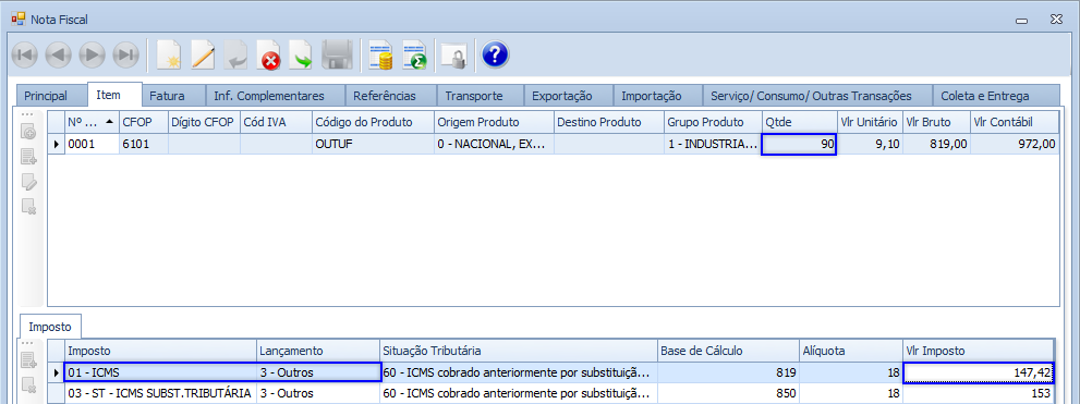Nas colunas "Quantidade", será exibida a quantidade do item da Nota Fiscal.