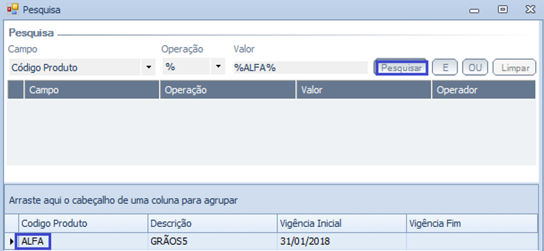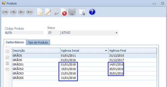 Efetuada alteração na tela para listar os produtos com diversas vigências encerradas no mesmo período, pois produtos com essas características não estavam sendo listados, impossibilitando a parametrização do saldo inicial.
