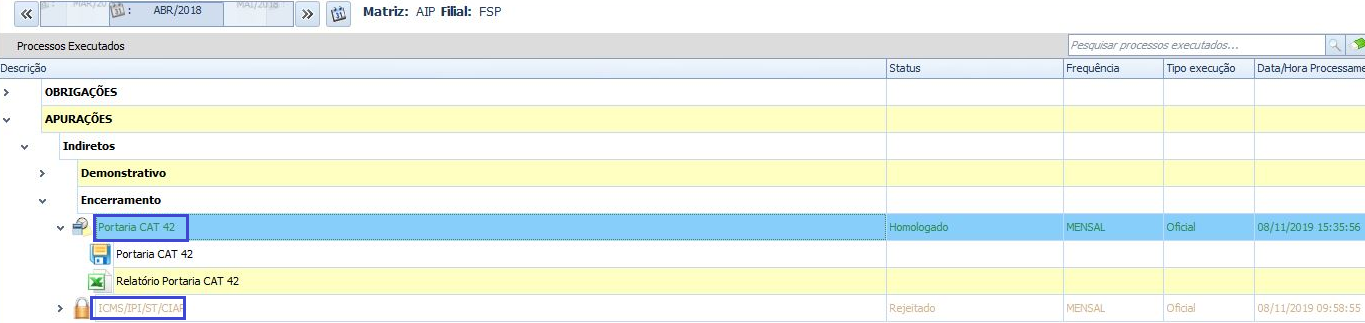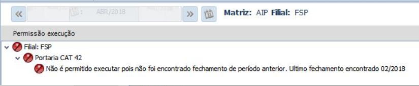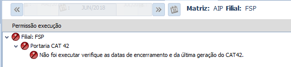 "Não foi executar verifique as datas de encerramento e da última geração do CAT42".