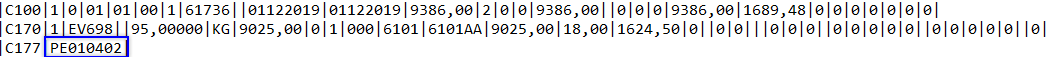 Desta forma, considerando o exemplo ilustrado, o código a ser apresentado no campo 02 (COD_INF_ITEM) do registro C177 será PE010402 (Indústria: sub apuração 04 - Operação incentivada de item com incentivo).