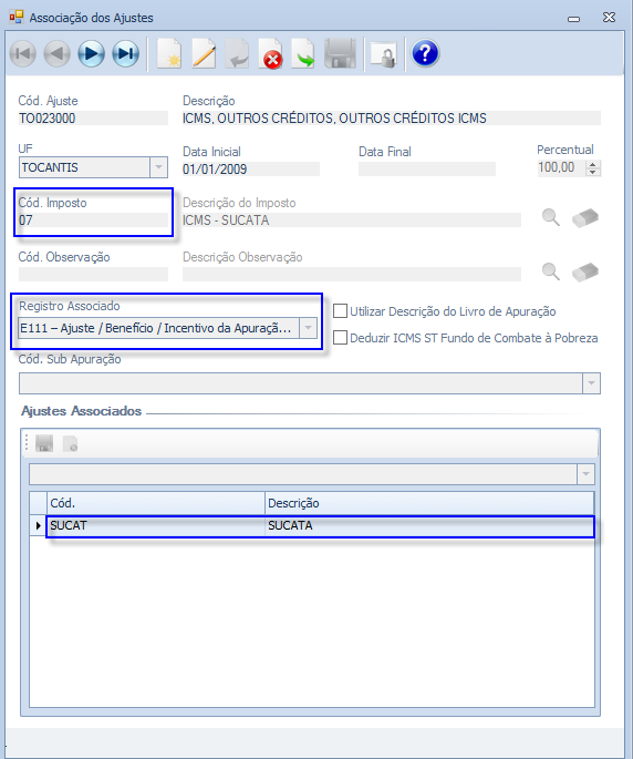 Associação dos Ajustes - Registros: E111, E220, E311 e E530