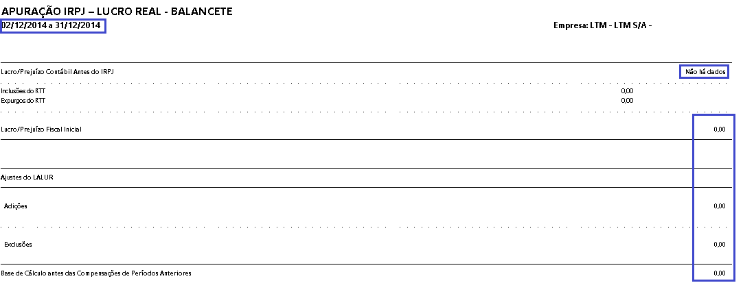 Quando a data inicial das apurações não era o primeiro dia do período (exemplo: Casos de situação especial), as apurações eram geradas sem dados mesmo quando existiam dados na tela do LALUR-LACS: