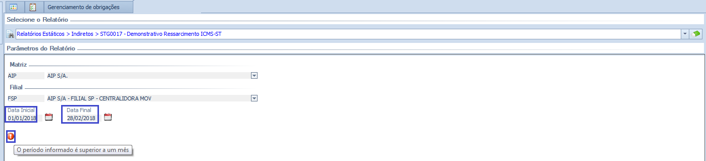 Data Inicial / Data Final: Informar o período Inicial e final.
