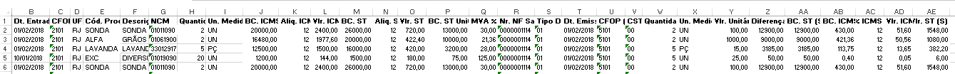BC. ST Unitário: Valor da coluna BC ST dividido pela coluna QTDE (BC ICMS ST / QTDE);