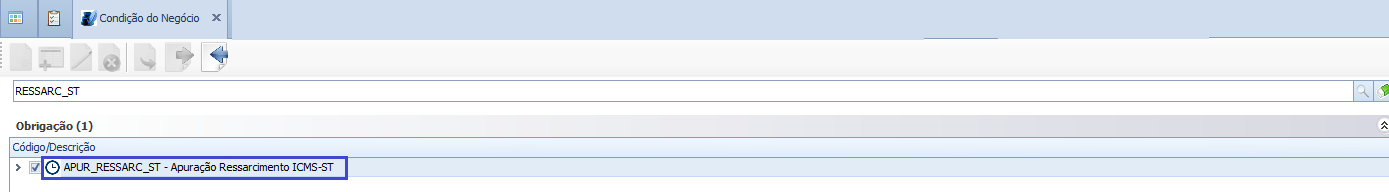 Tipo Obrigação: Selecionar APUR_RESSARC_ST;