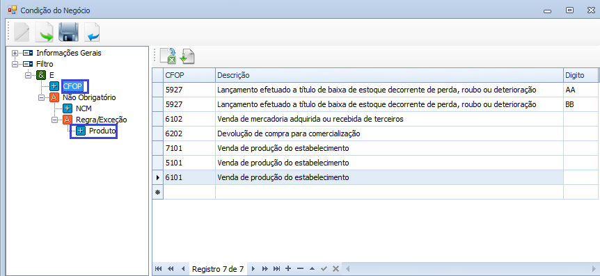 Dígito: A parametrização de Dígito é opcional. Se informado o dígito, somente CFOP’s com o dígito cadastrado serão considerados no cálculo.