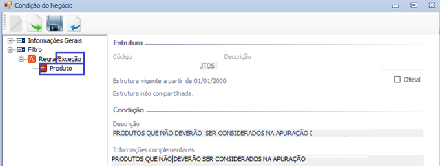 Se a condição de negócio for utilizada como exceção, somente os produtos parametrizados serão desconsiderados do cálculo do ressarcimento.