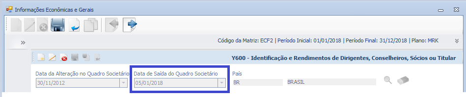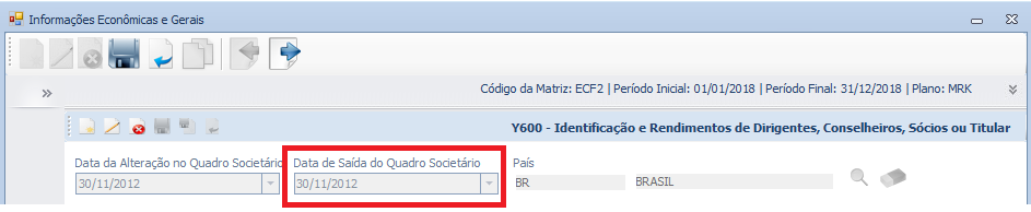 Tratamento efetuado na tela da DIPJ para correção da importação do registro Y600, que importava indevidamente a data de saída do quadro societário: