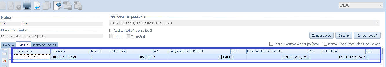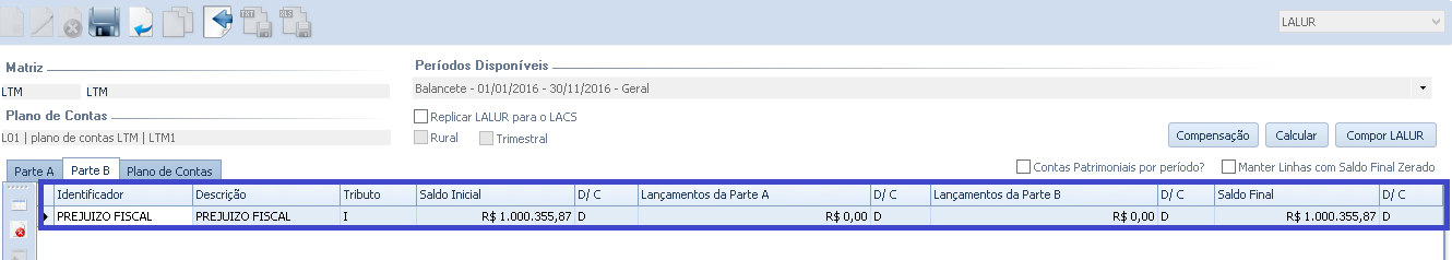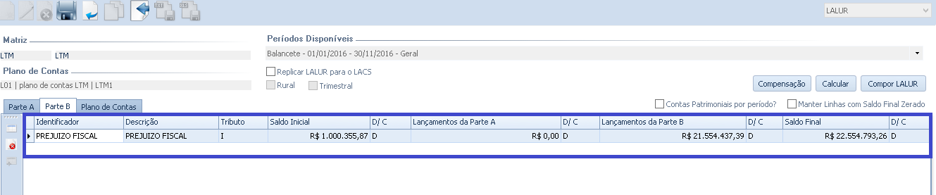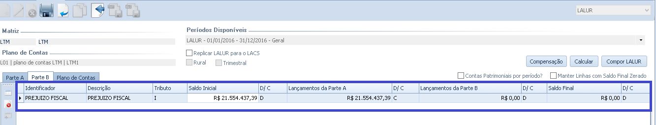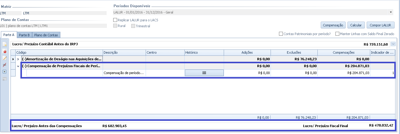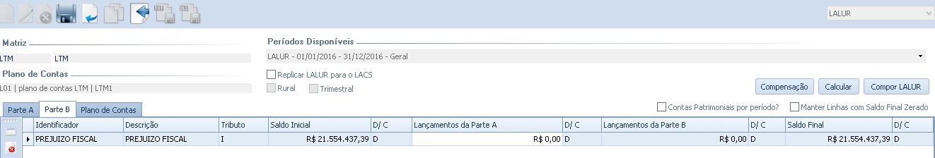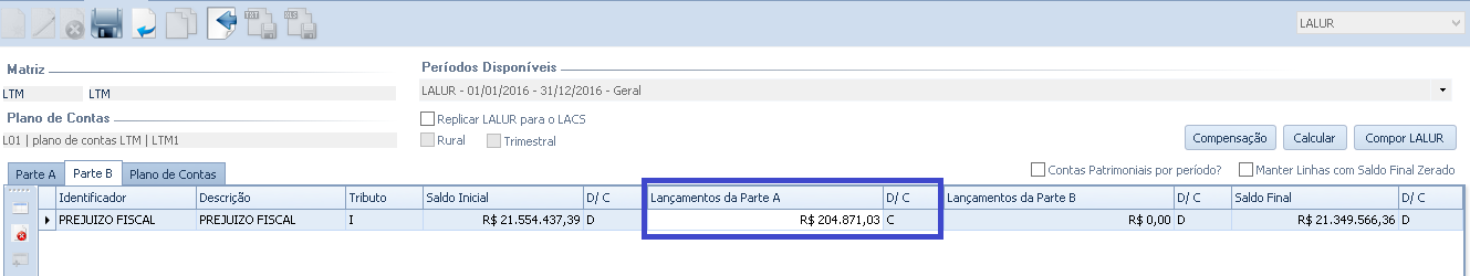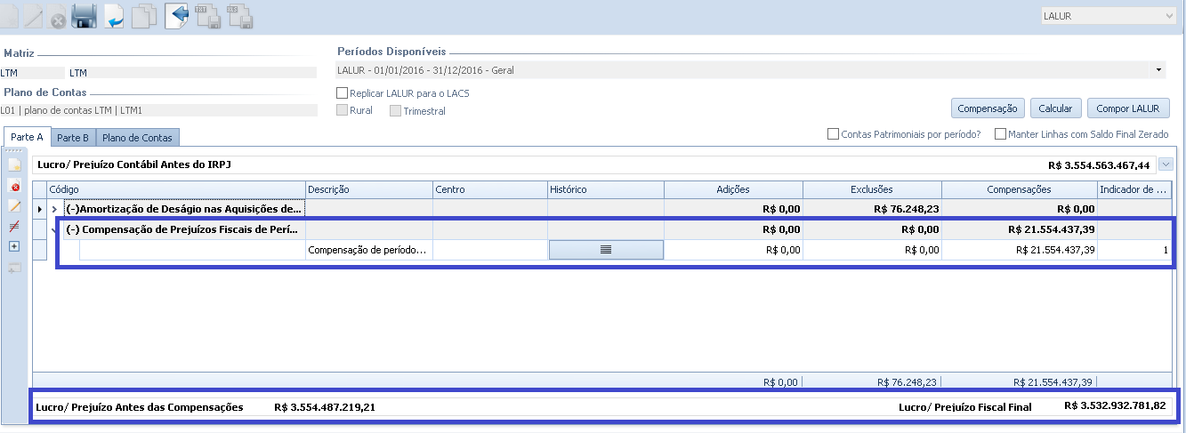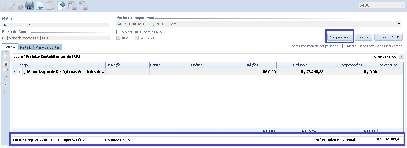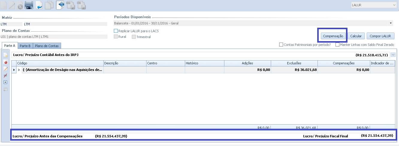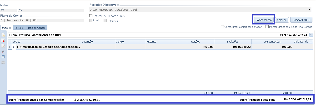 Disponibilizada informação de "Lucro/Prejuízo antes das compensações" e botão "Compensação" na aba Parte A: