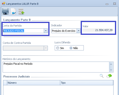 3 - Inclusão de valor inicial de prejuízo na parte B