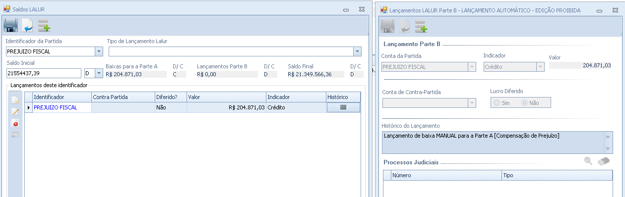 Descrição da Nota: Melhoria efetuada na tela do LALUR/LACS para permitir lançamentos automáticos de compensação de prejuízos anteriores/controle de prejuízo fiscal.
