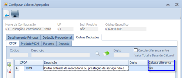 Tratamento realizado na geração do registro 1400 para considerar apenas as operações tributadas ao efetuar o cálculo da diferença entre o Valor Total e a Base de Cálculo, efetuado quando selecionado o flag “Calcula diferença entre Vl. Total e Base de Cálculo?” da aba “Outras Deduções” da tela “Configurar Valores Agregados”.