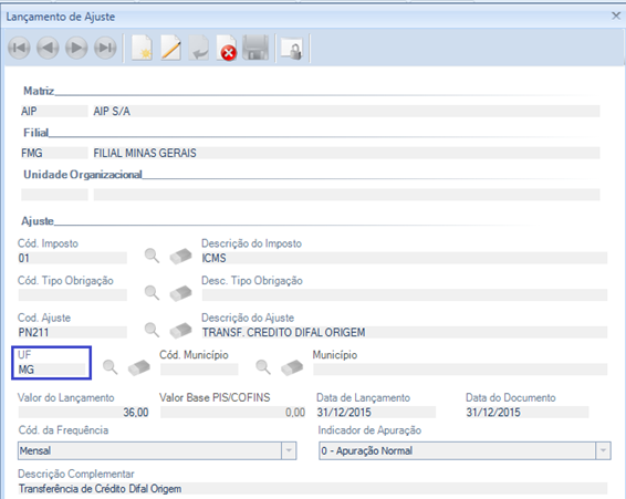 Antes da alteração, o campo "UF" não continha a informação da UF da Filial.