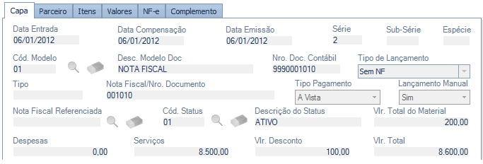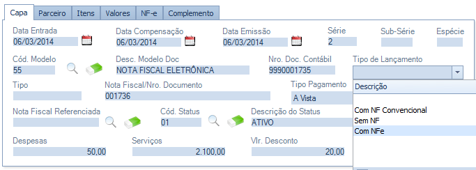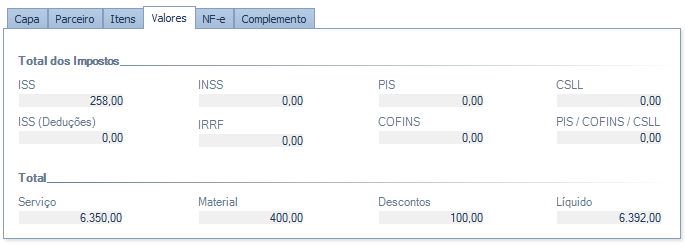 Nessa aba, os totais de Despesas e Serviços serão apresentados no campo Serviços.