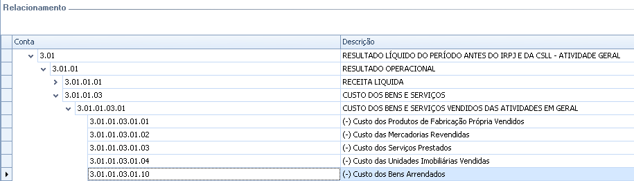 3.01.01.03.01.10 (-) Custo dos Bens Arrendados