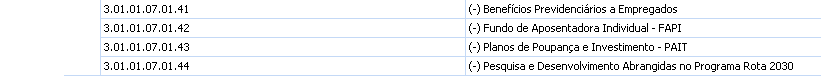 3.01.01.07.01.44 (-) Pesquisa e Desenvolvimento Abrangidas no Programa Rota 2030