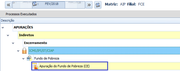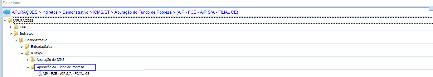 Acessar o caminho: Apurações > Gerenciamento de obrigações > Apuração > Indiretos > Demonstrativo > ICMS/ST > Apuração do Fundo de Pobreza e selecionar a Filial desejada.