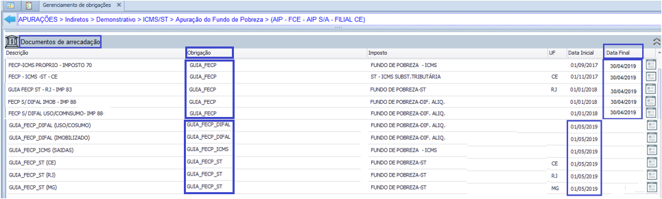 Foram criadas obrigações/guia distintas para as apurações de FECP sobre DIFAL, ICMS e ST, para possibilitar a contabilização destas apurações separadamente.