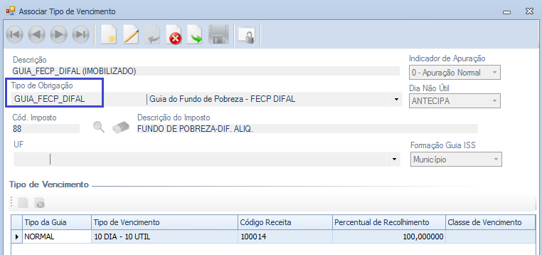 Cód. Tipo Obrigação: GUIA_FECP_DIFAL;
