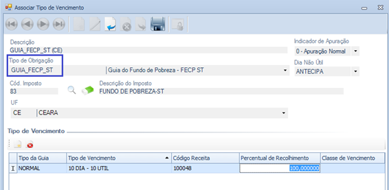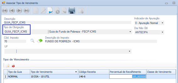 Cód. Tipo Obrigação: GUIA_FECP_ICMS;