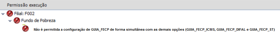 “Não é permitida a configuração de GUIA_FECP de forma simultânea com as demais opções (GUIA_FECP_ICMS, GUIA_FECP_DIFAL e GUIA_FECP_ST)”.