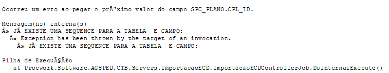 Ocorriam erros na importação da ECD no banco de dados SQL Server: