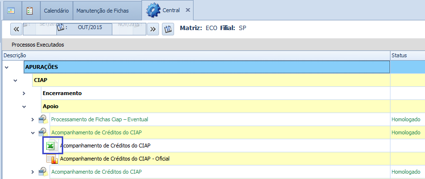 Incorporado ao sistema o ícone específico do Excel, para utilização quando gerados relatórios pela Central de Processos.