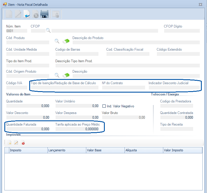 Campos novos na tela Item - Nota Fiscal Detalhada