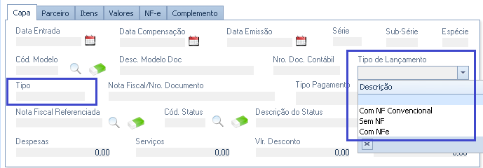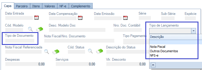 Descrição da Nota: Tela de Serviços Tomados tratamento efetuado para habilitar o campo Vlr. Imposto permitindo alteração na edição do lançamento, e alteração do nome do campo Tipo de Documento e do nome das opções do campo Tipo de Lançamento.