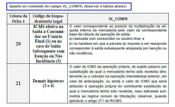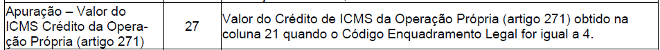 Será considerado o mesmo valor da coluna 21, quando houver dados para o enquadramento 4 - Saída para outro estado, com base no Manual do Sistema Ressarcimento de ICMS-ST.