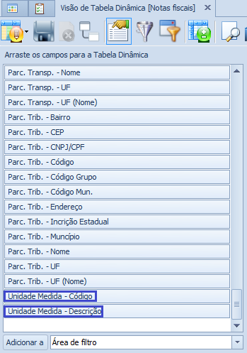 Tratamento efetuado na Listagem da Visão de Tabela Dinâmina, no Relatório Notas Fiscais para disponibilizar os seguintes campos:
