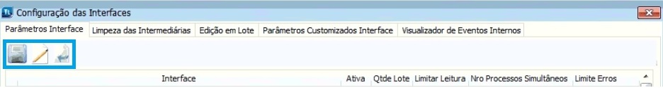Ao acessar a aba "Limpeza de Intermediárias", os ícones dos botões não aparecem, dificultando o acesso as suas funções. E o mesmo acontece com as outras abas destacadas, conforme mostrado abaixo: