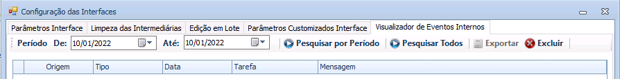 Integração > Configuração > Visualizador de Eventos Internos