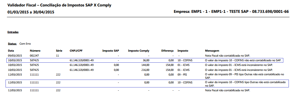 Remoção da exibição do valor imposto SAP no Relatório do Validador Fiscal.