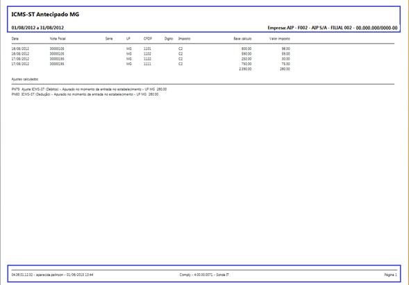 - Dados do relatório serão apresentados de forma sintética na geração oficial (agrupado por CFOP e/ou UF);