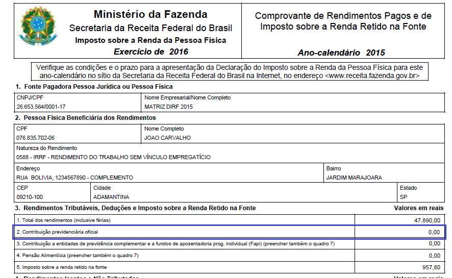 O valor de R$5.267,90 não é demonstrado no campo 2 do quadro 3 no Informe de Rendimento para o beneficiário João Carvalho.