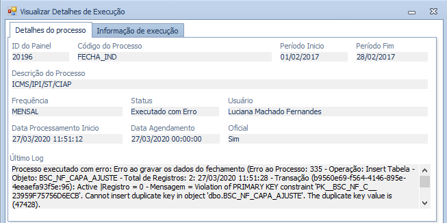 Antes deste tratamento era apresentada mensagem de erro no encerramento de indiretos, porém com termos técnicos, não sendo possível ao usuário identificar a origem do erro.