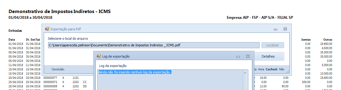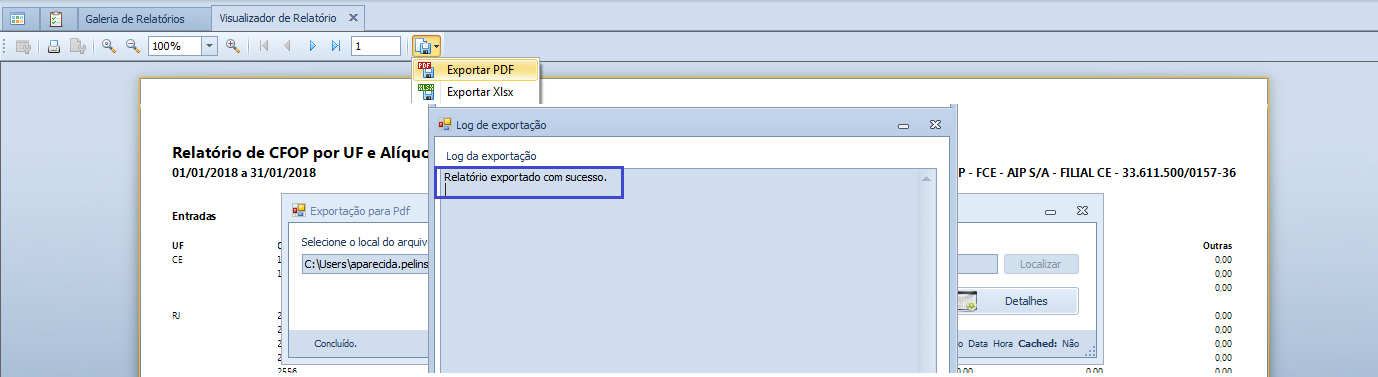 Antes de efetuar a melhoria, apresentava a seguinte mensagem após exportar relatórios: