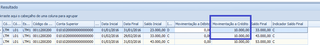Caso o parâmetro seja definido como "Não", no exemplo acima o valor demonstrado seria 43.000,00 , saldo final do período.