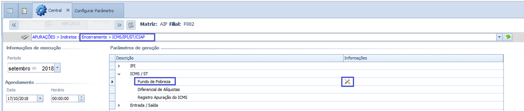 Descrição da Nota: Tratamento efetuado na apuração do Fundo de Pobreza, para não gerar guia e ajuste de FECP sobre ICMS (imposto 70), quando selecionada a opção do filtro 02-ST/DIFAL.