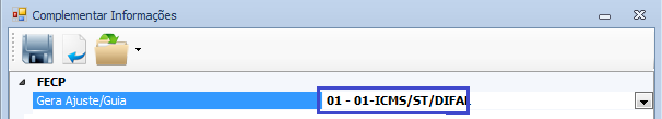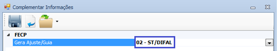 Só deverá gerar ajuste de FECP sobre ICMS quando o filtro estiver com a definição padrão 01-ICMS/ST/DIFAL.